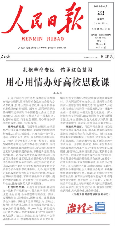 推进改革创新。习近平同志强调,推动思想政治理论课改革创新,要不断增强思政课的思想性、理论性和亲和力、针对性。我们注重在理论教学和实践教学上下功夫,守正创新,努力办好思政课。在理论教学方面,不断创新教学方式方法。让学院、教研室、教师、学生都参与到思政课教学改革中来,注重分析学生的认知规律、接受特点,采取情景教学法、案例教学法等方法。把理论教学的普遍性与学生因学科、专业等划分形成的特殊性结合起来,在教学中注重分类实施,采取专题教学法、目标教学法等方法。在实践教学方面,突出思政课的实践性,把思政小课堂同社会大课堂结合起来,积极探索搭建新型教学平台。比如,定期组织学生到陈潭秋故居、林育南故居等教学基地学习,引导学生坚定理想、勇于担当、乐于奉献。又如,组织青年马克思主义培训班的学员到红安鄂豫皖苏区革命烈士纪念馆进行研修,增强学生的历史认同感、时代使命感、社会责任感。