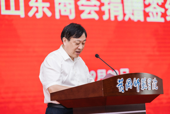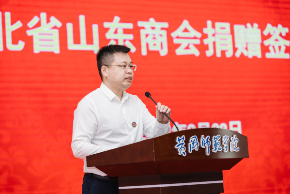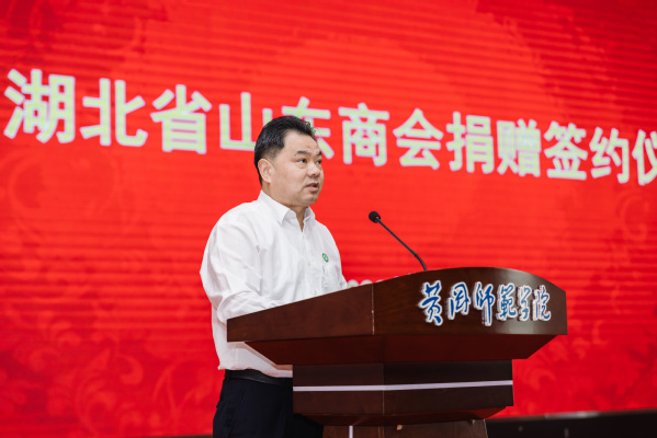 李文帅在致辞中指出,山东人民和黄冈人民在鄂鲁两地携手共抗疫情过程中,结下的友情厚重如山、情深似海,在投身教育公益事业上,商会与黄师建立了根深蒂固的深厚友谊。希望通过此次捐赠,能够鼓励更多优秀的教师坚守立德树人的初心,为党育人、为国育才。勉励更多的学生树立远大理想,为己修身、为国修业,做一个有理想、有道德、有文化、有纪律、有担当、有作为的优秀社会人才,为祖国的伟大复兴不懈奋斗。山东商会将和黄师进一步增进往来,加强交流与合作,齐心协力为黄师的建设和教育事业的发展以及人才培养做出更大贡献。