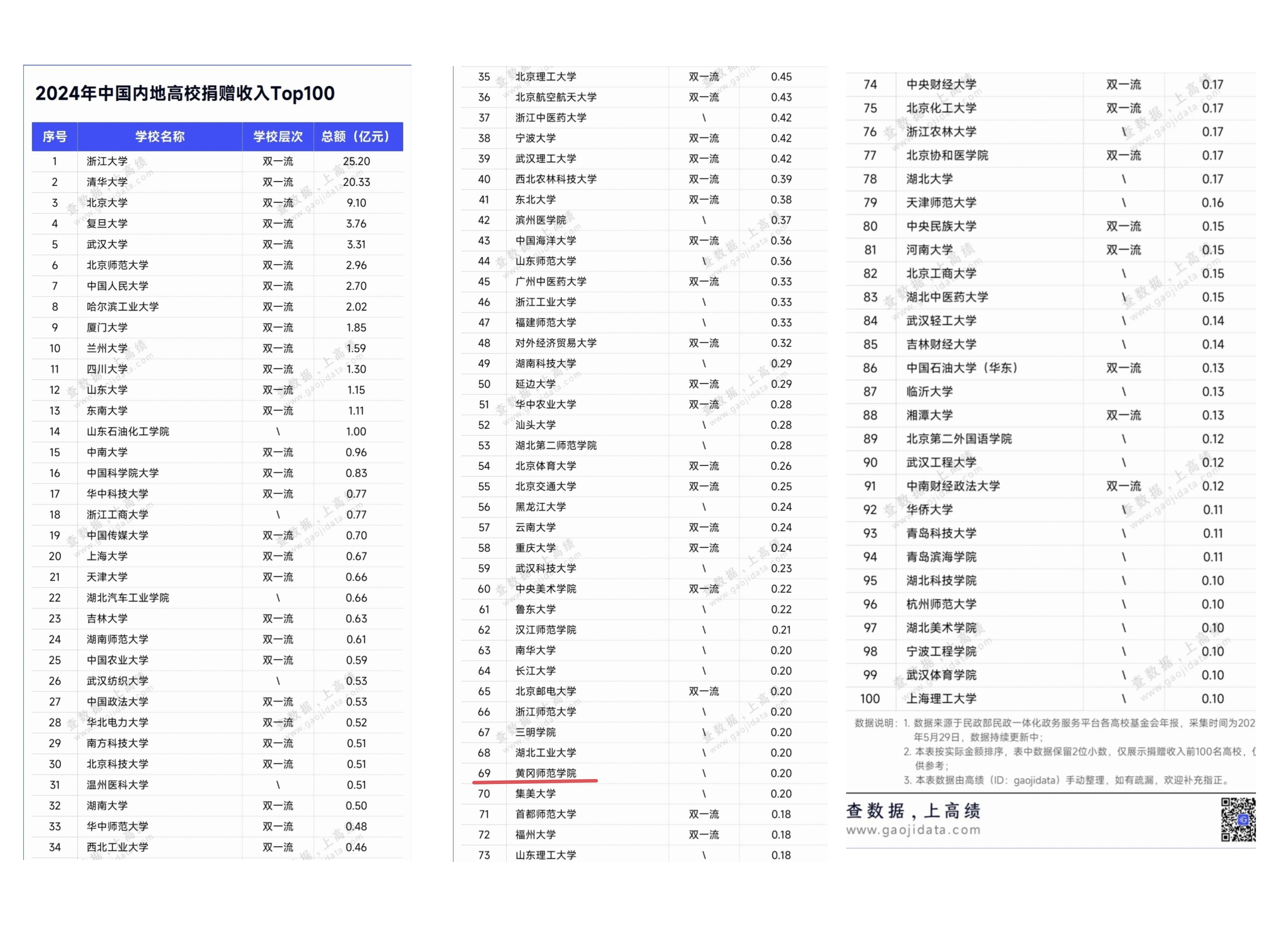 【百廿风华】学校蝉联2024年中国内地高校捐赠收入Top100