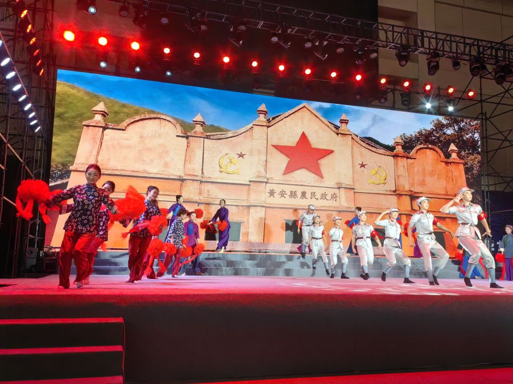 “敲锣又打鼓呀、张灯又结彩呀……”歌舞《八月桂花遍地开》一登上舞台,便瞬间点燃全场气氛,让现场师生在欢快的旋律中感受红色文化的魅力。