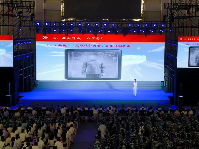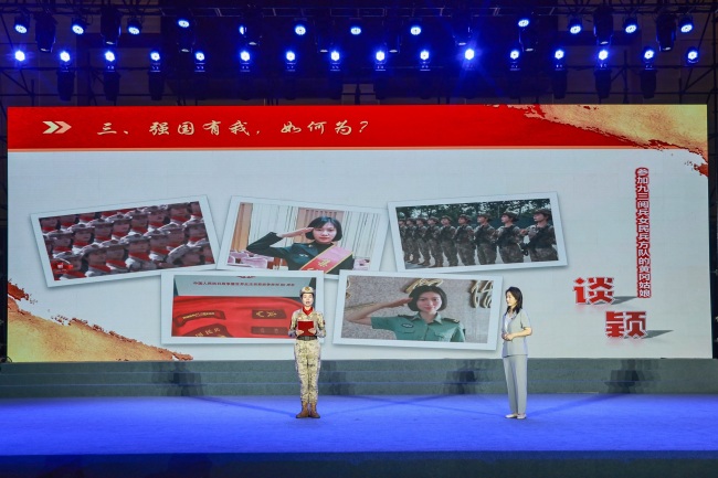 来自黄冈的95后姑娘谈颖的亮相让现场气氛沸腾。作为参加九三阅兵女民兵方队中接受全国人民的检阅的女民兵,她在现场分享了难忘的从军经历及感悟,并亲自示范了踢正步的动作,她用实际行动告诉大家强国有我,就是要锤炼本领,锻造强国之能。